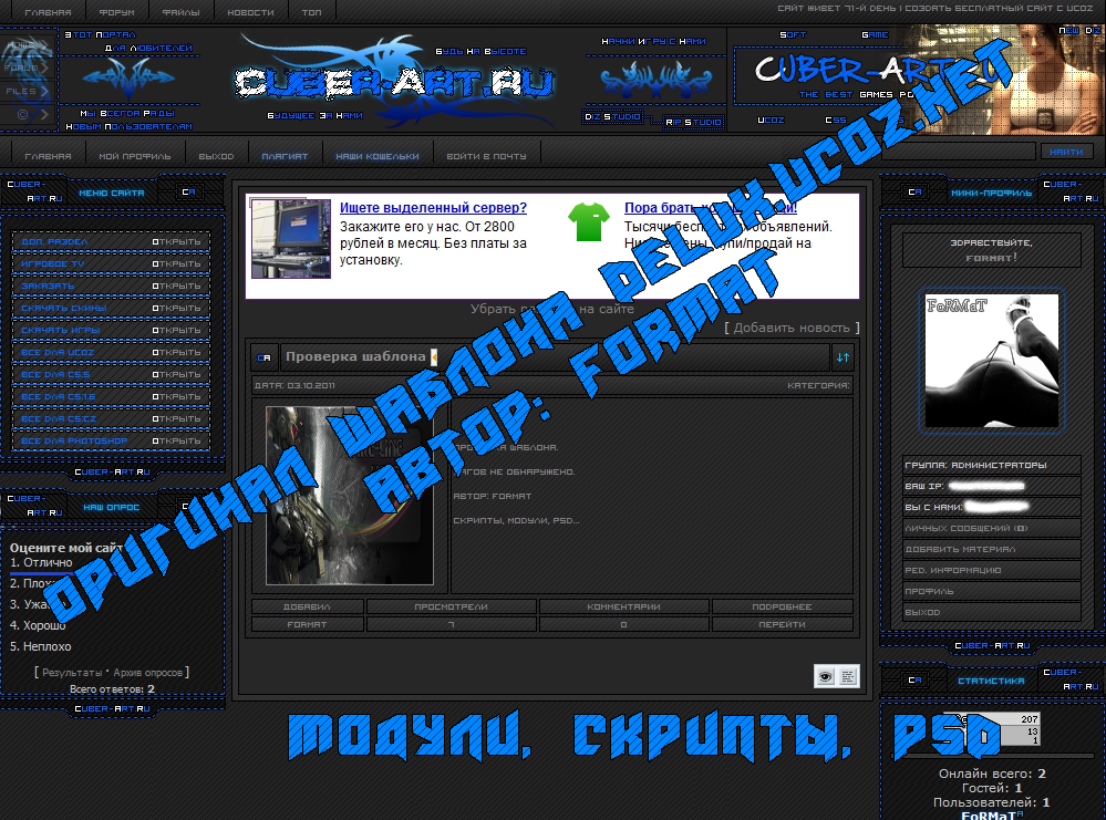 Оригинал Up-Rise.Ru (Carbon v.1) + несколько модулей